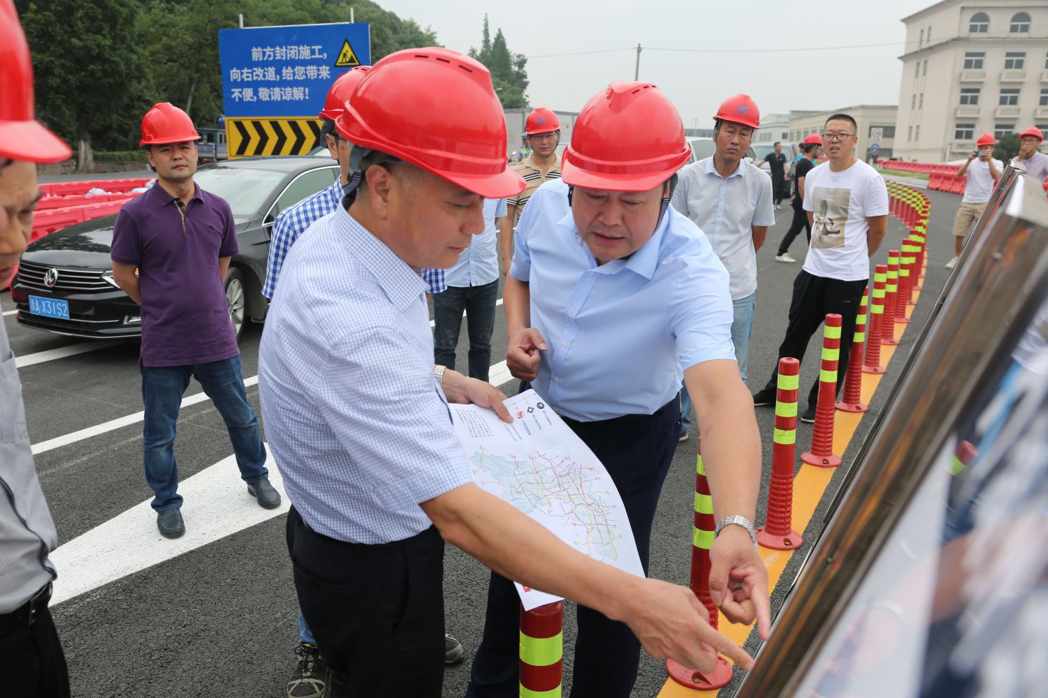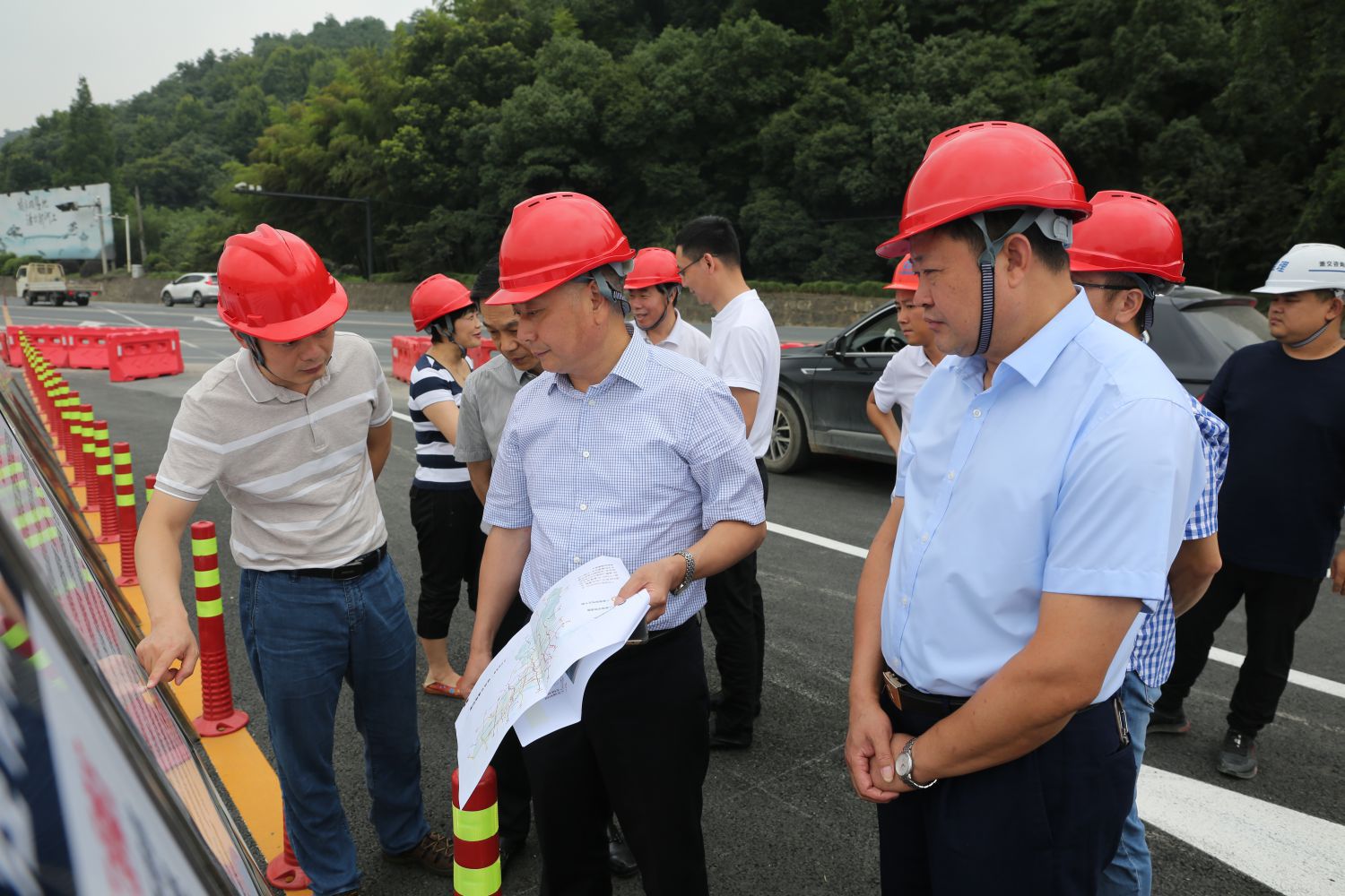 7月2日上午,杭州市交通運輸局黨組書記、局長鄭翰獻調研時代大道改建和03省道義橋至樓塔段改建工程。集團黨委書記、董事長祝關翔,建設、施工、監理單位負責人參加調研。