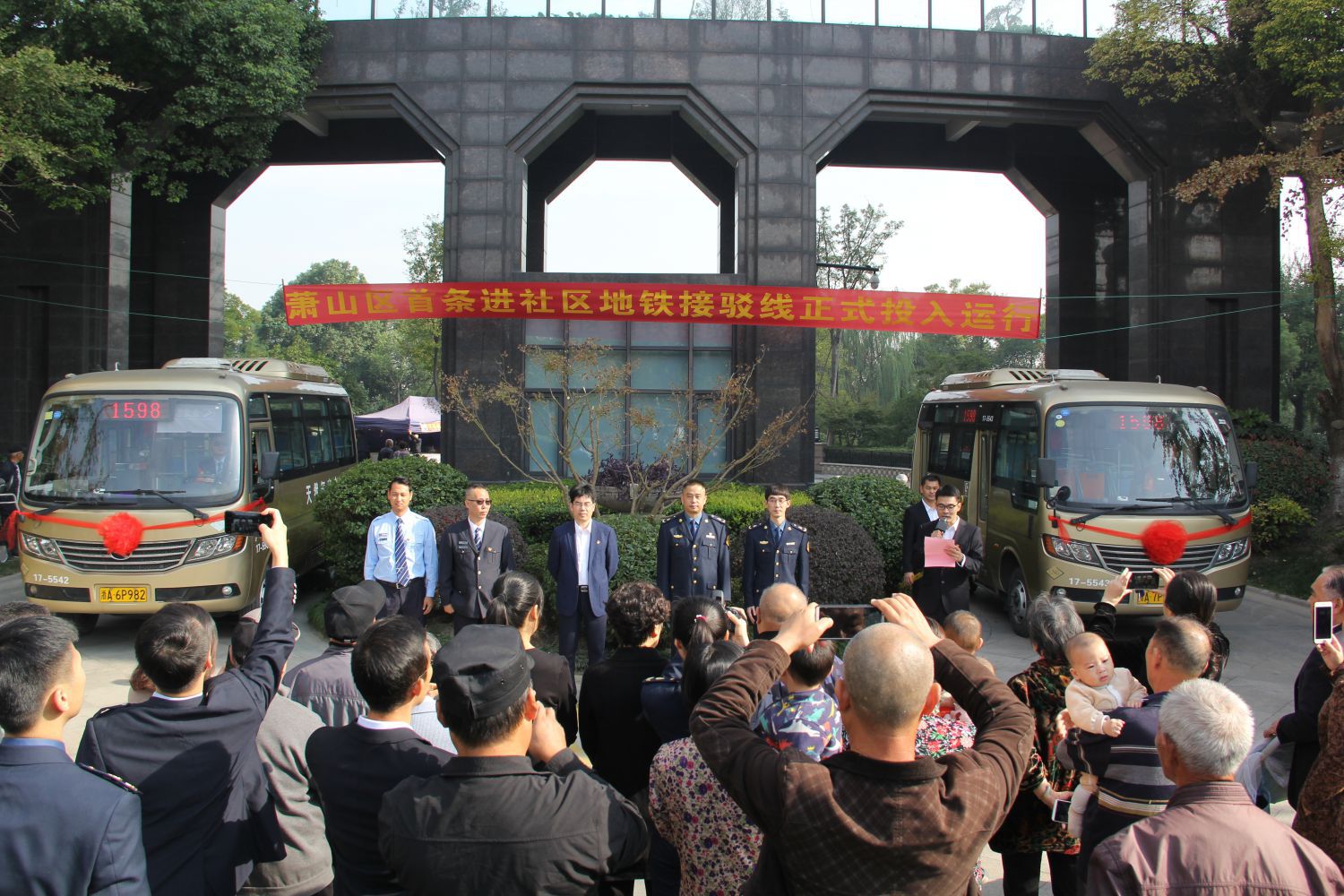 出門就能坐公交,直接送到地鐵站,“零空間換乘”讓市民出行更方便。11月1日上午,蕭山區(qū)首條進社區(qū)地鐵接駁公交線啟動儀式在寧圍街道水博社區(qū)隆重舉行,蕭山區(qū)寧圍街道黨工委委員、組織部長肖紅安,街道辦事處副主任潘丹陽、區(qū)道路運輸管理處黨總支書記葉凱、區(qū)寧圍街道辦事處社區(qū)管理辦科長張嵐科長、區(qū)道路運輸管理處辦公室主任戚波波、蕭山公交副總經(jīng)理金國華、水博社區(qū)書記姚良及公交相關(guān)人員參加儀式。水博社區(qū)公交站臺,二輛嶄新的1598路公交車整裝待發(fā),標志著蕭山區(qū)公交線路進社區(qū)新模式正式邁入“零空間換乘”時代。