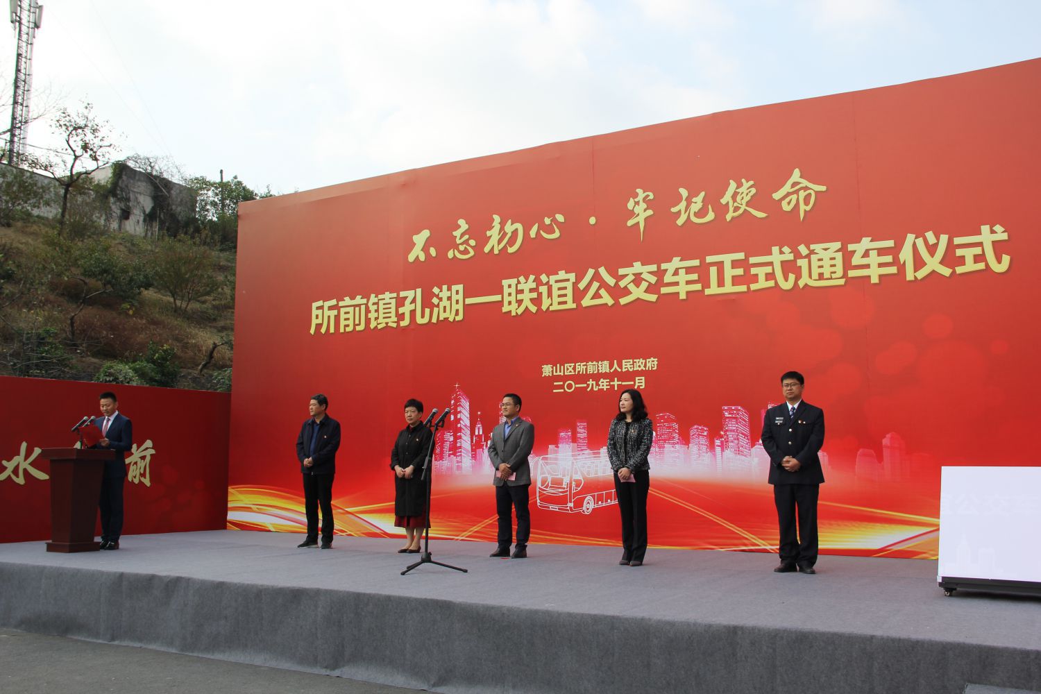 11月8日上午,新線開通儀式在所前鎮孔湖村隆重舉行,所前鎮黨委書記裘榮校,鎮黨委副書記、鎮長來巧玲,鎮人大主席金寶榮,區交通運輸局黨委委員、副局長、運管處主任步蘇琴等領導,蕭山公交黨委副書記、董事長、總經理張國棟等公司班子及區鎮相關人員參加儀式。