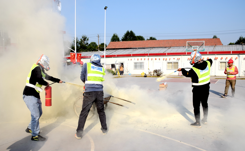 本次應(yīng)急演練在項(xiàng)目駐地舉行。為做好本次演練,項(xiàng)目安全總監(jiān)、安質(zhì)部、工程部認(rèn)真研討、制定演練方案,就演練現(xiàn)場(chǎng)進(jìn)行指揮布置,對(duì)參加演練人員進(jìn)行活動(dòng)動(dòng)員。上午8點(diǎn)30分,隨著一聲清脆的哨響,現(xiàn)場(chǎng)所有人員進(jìn)入應(yīng)急演練狀態(tài)。項(xiàng)目安質(zhì)部門(mén)首先講解了消防基礎(chǔ)知識(shí)、發(fā)生火情后逃生措施及器具使用技巧,項(xiàng)目部模擬樓梯間因線路老化造成堆放的雜物發(fā)生火災(zāi),安全員發(fā)現(xiàn)后,立即發(fā)出警報(bào),通知所有人員進(jìn)行撤離,然后項(xiàng)目部消防救援隊(duì)觀察火勢(shì)后,佩戴防煙面罩?jǐn)y帶滅火器進(jìn)行火勢(shì)控制,火勢(shì)進(jìn)一步蔓延至二樓,滅火人員撤出,進(jìn)一步采用消防栓水槍進(jìn)行撲滅,火勢(shì)逐漸變小至熄滅。