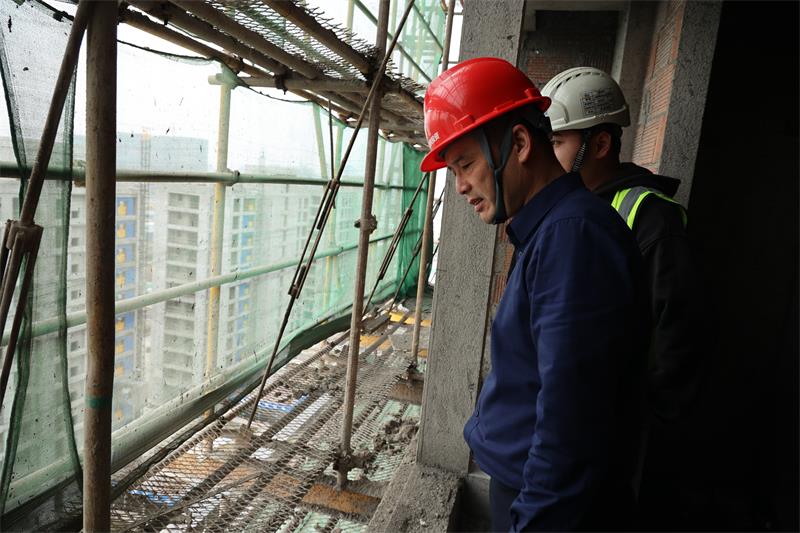 會議結束后,徐連興對工地安全管理臺賬進行了檢查。隨后到正在施工的樓層內檢查,現場指出工人的不規范操作,并督促負責人完善巡檢機制,把隱患和事故苗頭掐滅在根源。