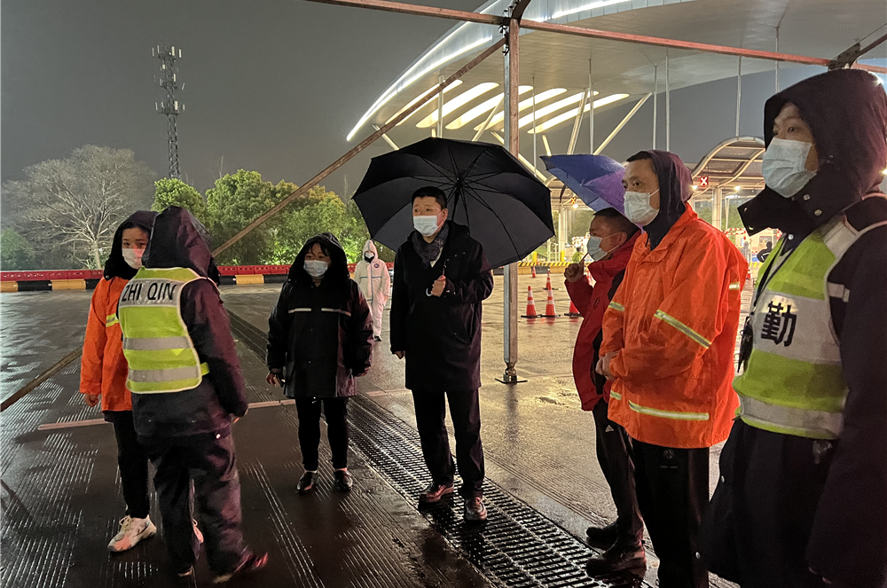 副區(qū)長方軍20日下午及晚上,前往機場公路主線收費站檢查疫情防控工作。