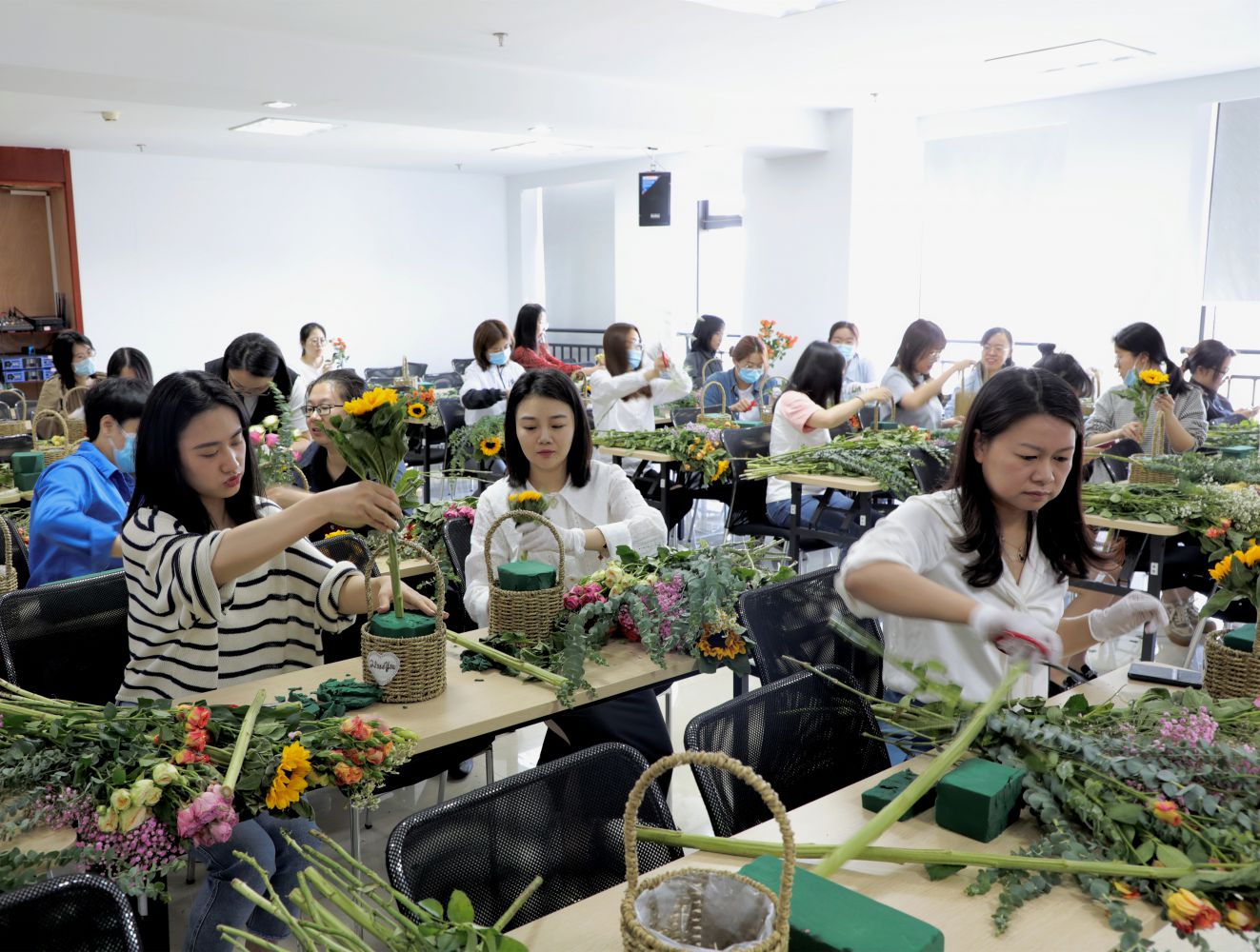 5月17日下午,在公司17樓會議室,公司組織女同胞參加了插花活動,讓大家暫時放下工作,愉悅身心。