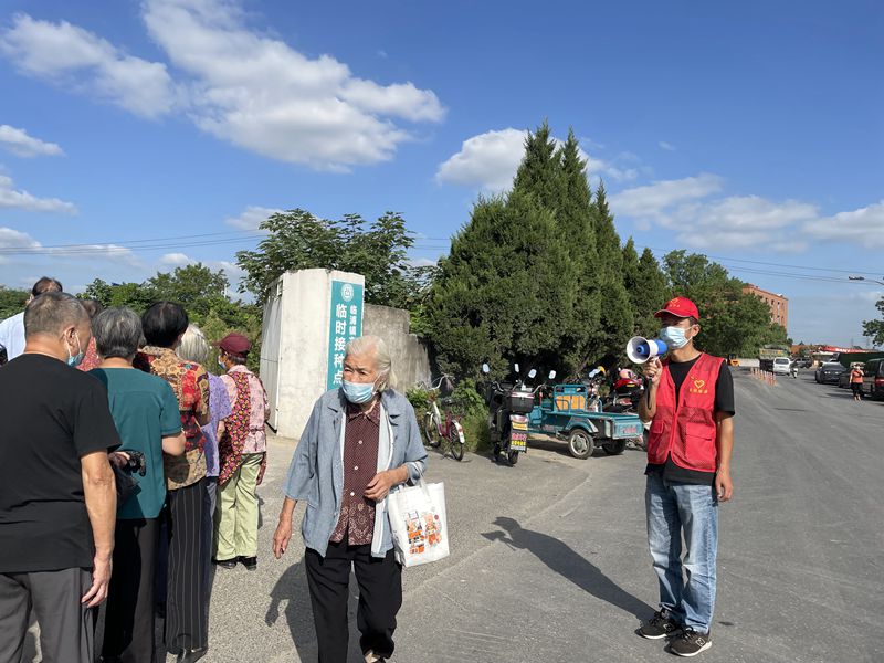 現場,老人們在志愿者的有效引導下排起長長的隊伍,隊伍排到哪里,我們的志愿服務就跟到哪里。黨員志愿者們牢記為群眾辦實事的初心,與社區居民志愿者密切配合,細心觀察老人的身體狀況,及時為老人們答疑解惑,認真普及疫苗接種的相關政策、知識,傳遞黨和政府為民、惠民的關懷和真情。