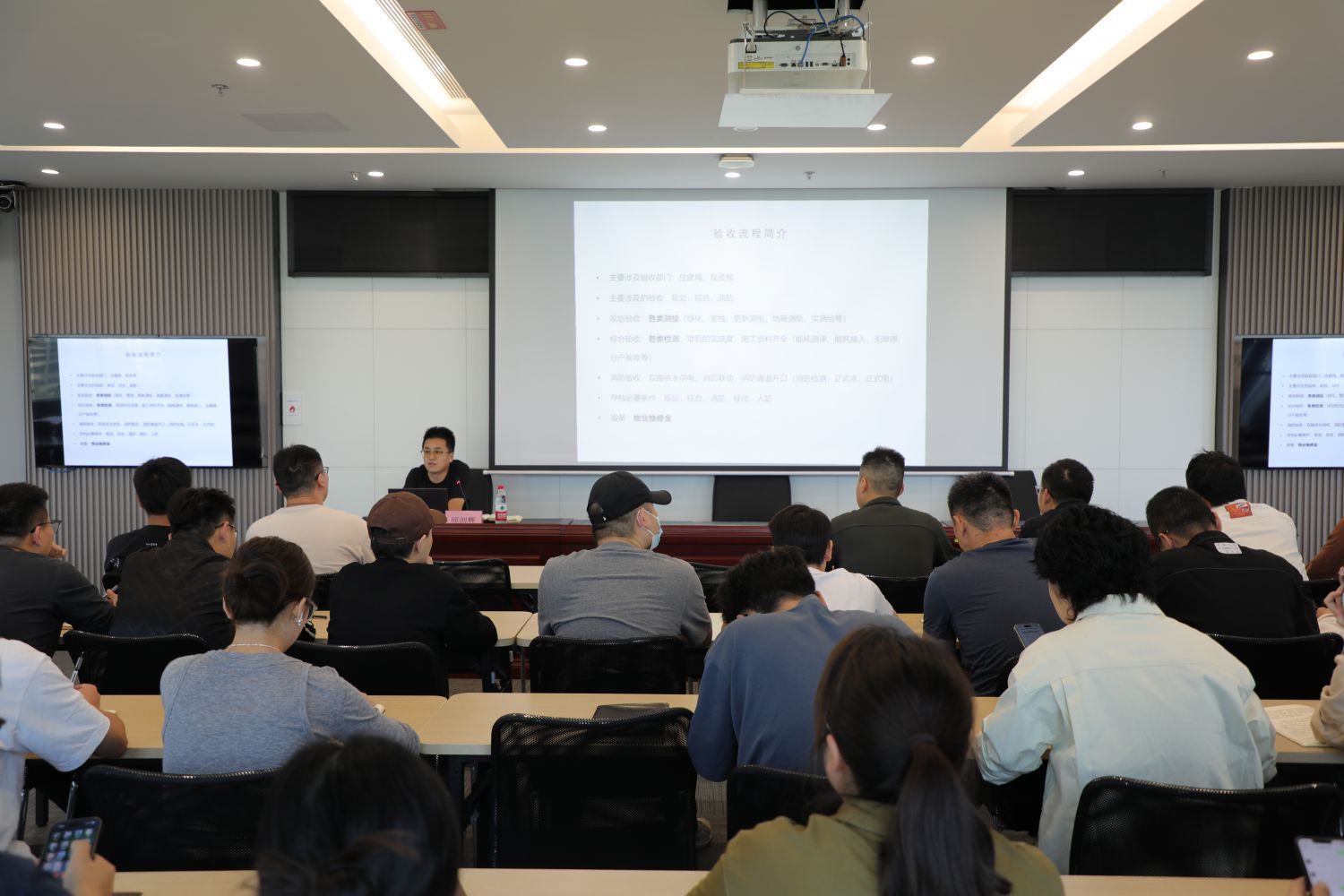 由城區(qū)建設(shè)公司工程建設(shè)部經(jīng)理邱劍輝授課