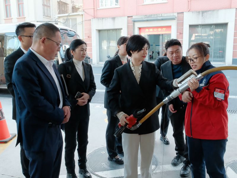 考察第一站來到浙江嘉興平湖濱海大道站,該站是中國石化首座批零兼營“五位一體”綜合能源服務(wù)站,除加油、加氣、充電和易捷服務(wù)外,該站還以零售和批發(fā)兩種形式提供氫氣業(yè)務(wù),中石化平湖支公司經(jīng)理朱寅及片區(qū)經(jīng)理邵佳熱情接待了公司考察團一行。