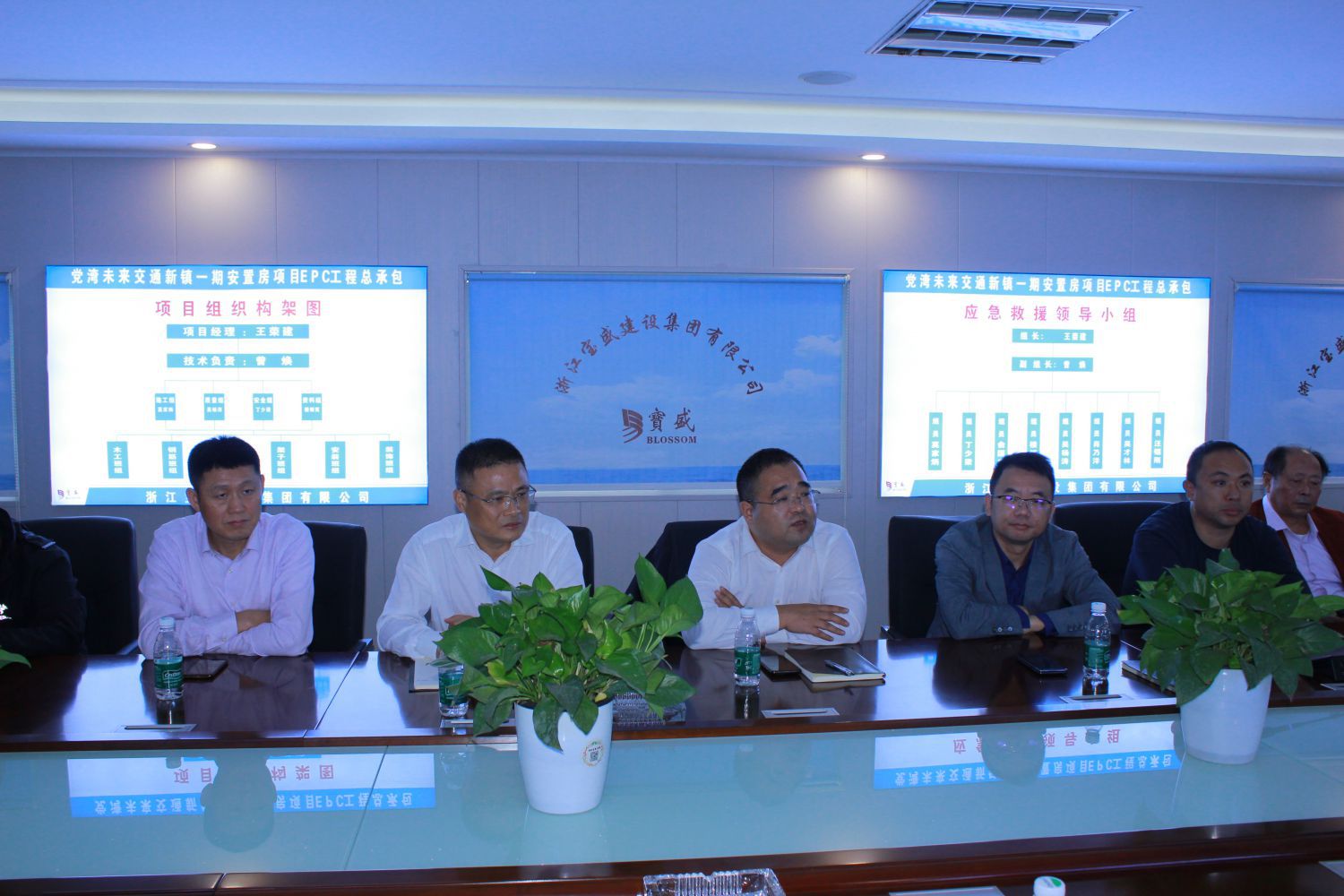 參觀結束后,交通新鎮公司、黨灣鎮政府、各代表開展座談會進行面對面交流。會上,交投集團黨委委員、副總經理金文華對黨灣鎮各位領導、相關村書記、各代表的到來表示熱烈歡迎,并表明了對安置房項目質量管控的決心和對施工單位施工質量的要求。