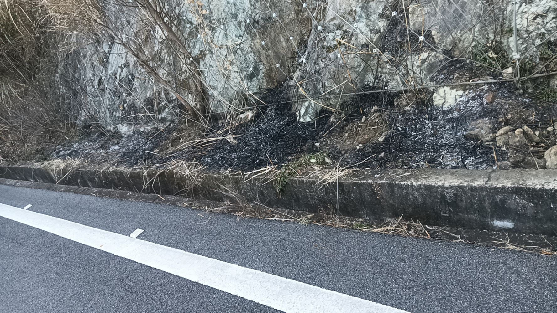 當(dāng)日,養(yǎng)護隊員巡邏林道時,隊員吳德平、樓志德、陳吾祥、鐘楊敏銳發(fā)現(xiàn)路邊排水溝有縷縷灰煙飄散。他們憑多年經(jīng)驗,立即停車查看,發(fā)現(xiàn)枯葉堆下隱蔽火點已引燃周邊雜草。隊員們用標(biāo)準(zhǔn)流程快速處置林道火源,啟動應(yīng)急預(yù)案:1.立刻上報火情;2.使用隨車滅火器壓制火;3.用土石壓制滅火。全程僅用3分鐘有效控制火情,過火面積不足3平方米。