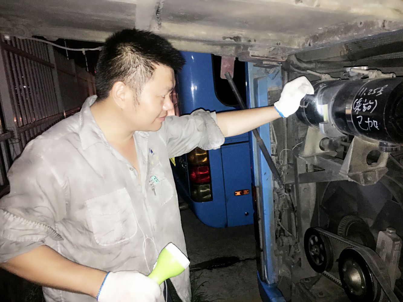 8月8日、8月9日晚間,長運修理分公司組織金山車間技術骨干對所承修的265輛公交車進行車容車貌大檢查,面對此次時間緊、任務重的檢查工作,維修人員們重點加強了車輛自編號、電子路牌、邊門保險、車身標識照顧專座、安全錘標識等項目的排查。在檢查過程中,突如其來的暴雨也讓維修人員們措手不及,本就被汗水濕透了的衣襟又被暴雨淋的大汗淋漓,但大家都克服了困難與不便,堅持圓滿的完成此次車容車貌的檢查工作,積極迎接杭州市全國文明城市的復評檢查。