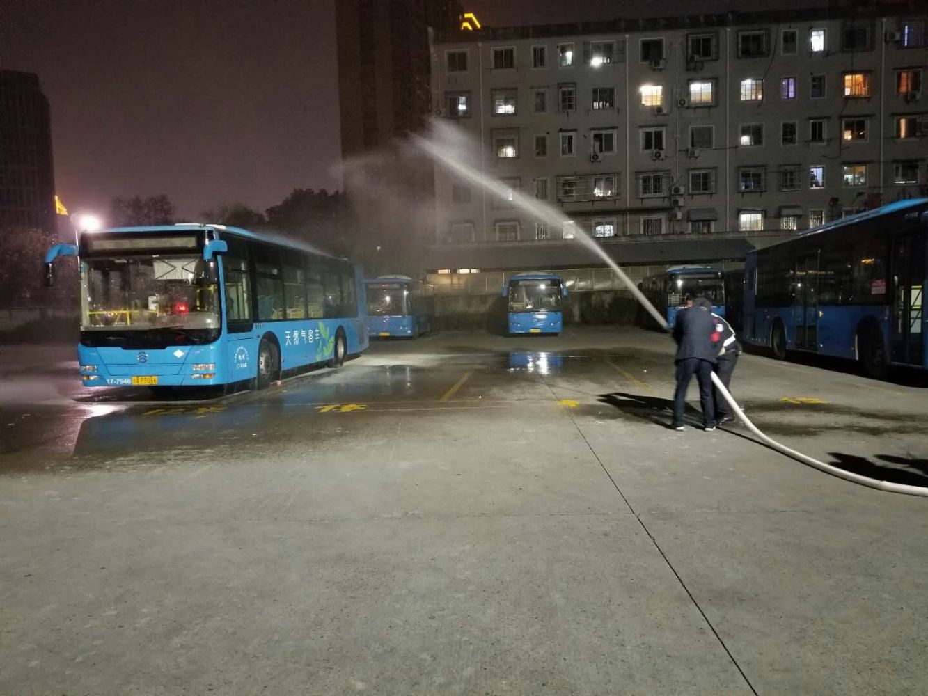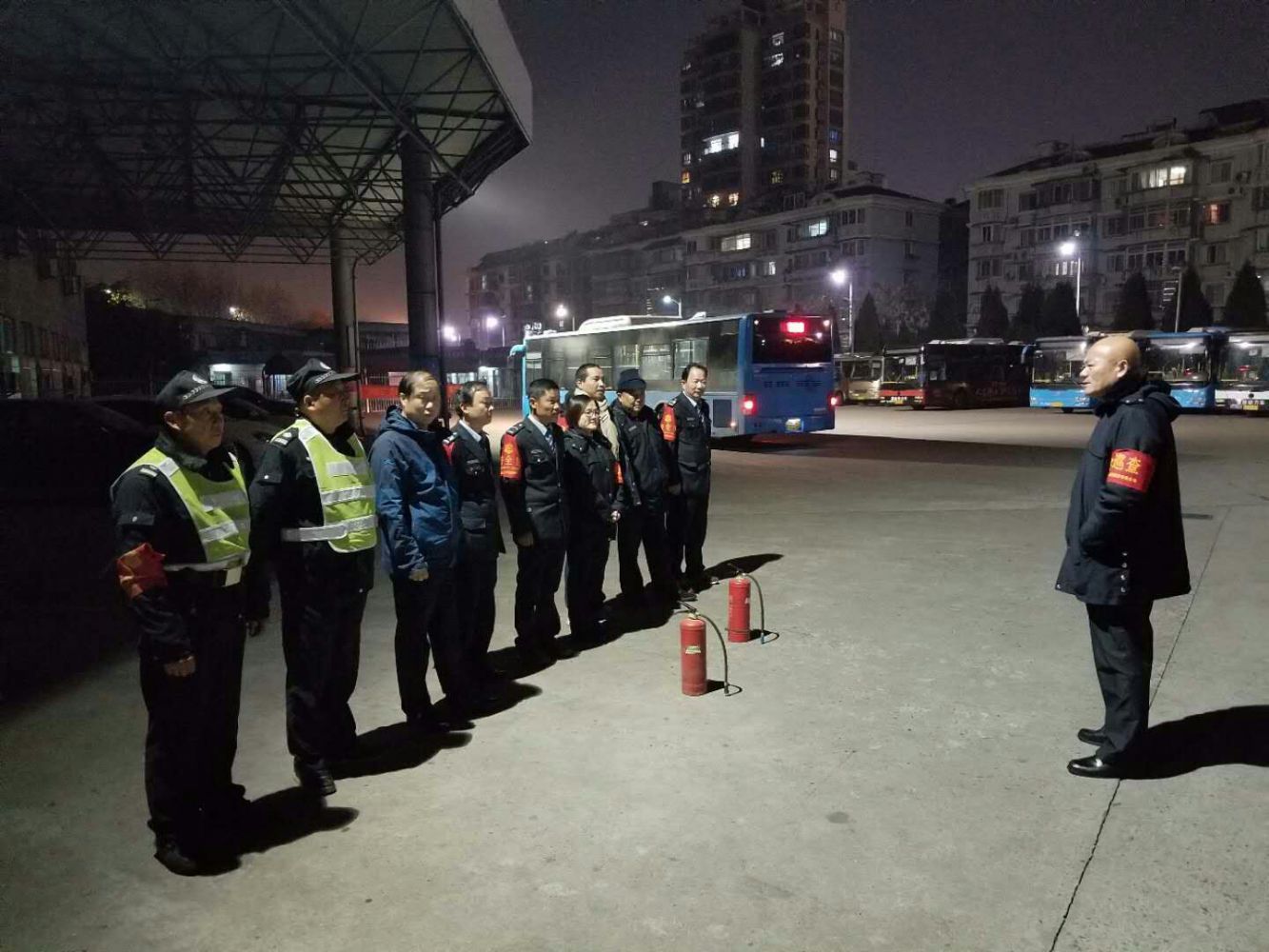 19時45分啟動停車場消防應急預案。19時46分,保安人員、監控中心發現“火情”,保安人員迅速拉響警報,19時47分,車隊人員、司機、站員迅速趕至起火點并在大江東車隊陳隊指揮下進行撲救,19時48分,司機將周邊車輛進行疏散,19時50分水帶出水,19時51分“火勢”撲滅,警報解除。本次演練保安人員發現及時,車隊人員、司機、站員撲救迅速,滅火器操作熟練。