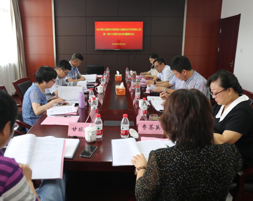 6月29日上午,機場高速公司第一屆六次股東會議和董事會議在公司三樓會議室召開。杭州交投集團副總經理趙益民,區交投集團黨委書記、董事長祝關翔,區交投集團副總經理、公司董事長楊文彪,公司總經理李忠曉、黨支部書記陳強,以及公司全體董事、監事參加了會議。會議由公司董事長楊文彪主持。 會議聽取了公司2017年度總經理工作報告、2017年度財務工作報告,充分肯定了上屆董事會以來,公司在項目建設、收費運營、內部管理等方面所取得的成績,并對公司下階段工作思路、目標任務及工作措施予以認可。會議還就目前公司經營管理中存在的部分問題,進行協商和審議。 會議指出,雙方股東要在此基礎上多溝通、多交流,根據省、市、區各級政府和相關行業管理部門的要求,繼續做好機場公路的收費運營和養護管理工作,鞏固和提升機場公路“一流道路、一流服務、一流管理”的“省門第一路”品牌。