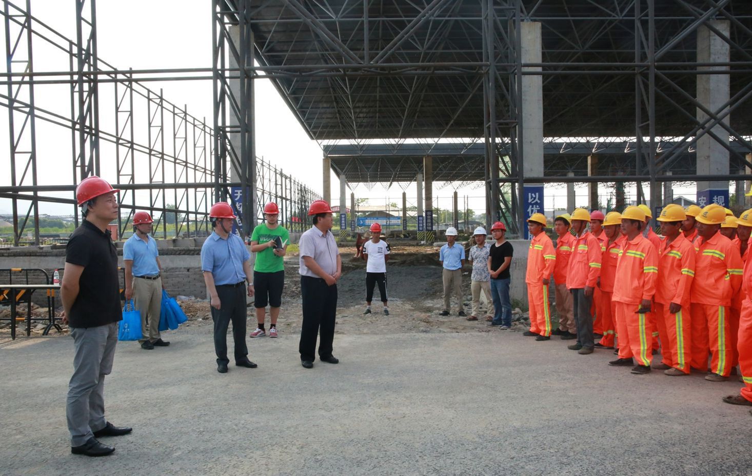 區(qū)政協(xié)主席洪松法、副區(qū)長吳煒煒一行到義橋作業(yè)區(qū)項目施工現(xiàn)場,對一線工人進行了高溫慰問,發(fā)放了夏季防暑慰問品,并叮囑大家做好防暑降溫措施,牢記施工安全。集團黨委副書記、副總經(jīng)理虞國燦,建管公司、浦陽江公司負(fù)責(zé)人參加慰問活動。