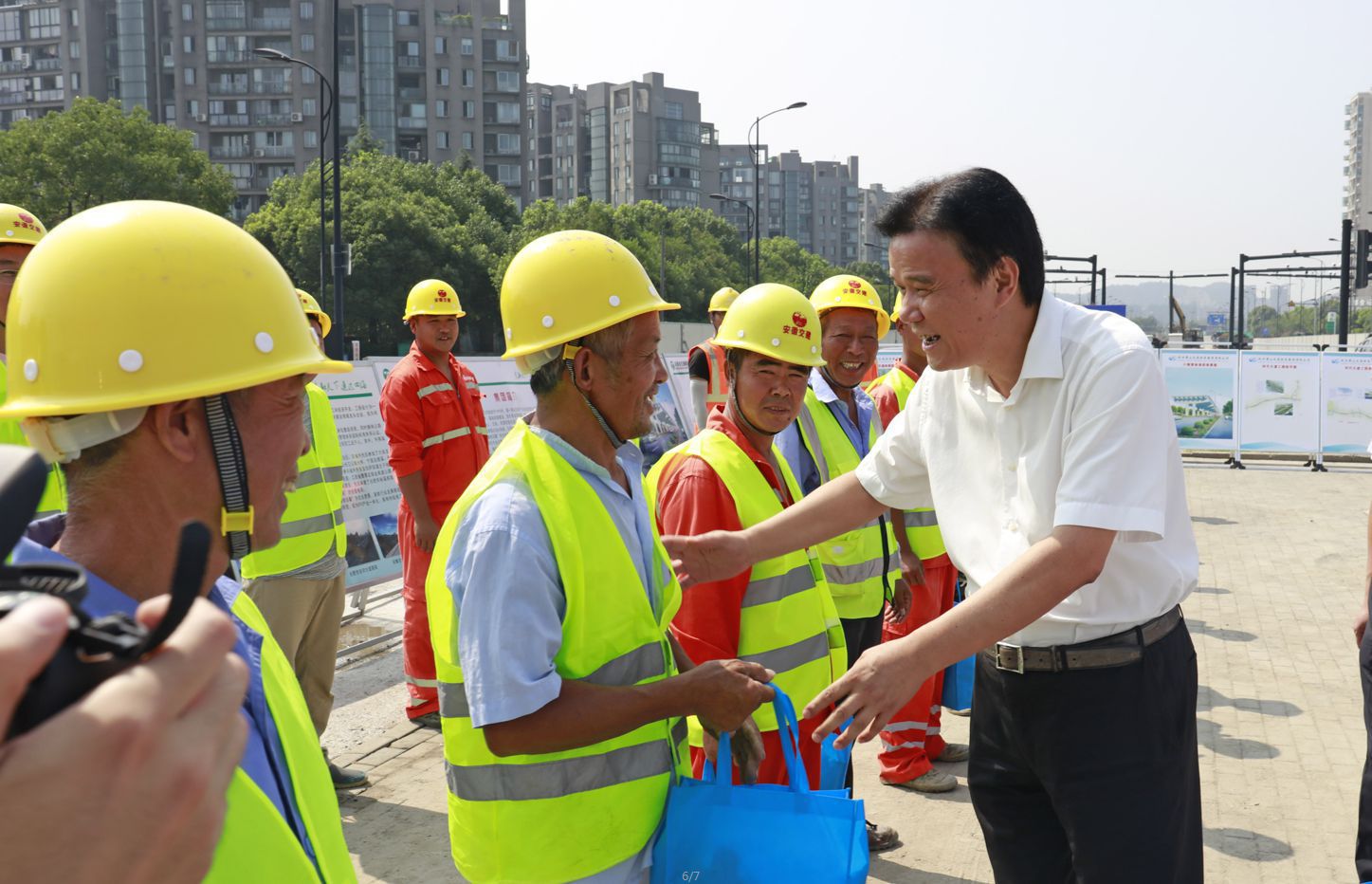 區(qū)委副書記趙立明、副區(qū)長方軍一行到時代大道改建工程現(xiàn)場,看望慰問了奮戰(zhàn)在高溫一線的工人代表,送上了防暑用品。同時,叮囑相關(guān)單位要切實做好職工防暑降溫工作,合理安排工作時間,做好安全生產(chǎn)工作。集團黨委書記、董事長祝關(guān)翔,建管公司負(fù)責(zé)人參加慰問活動。