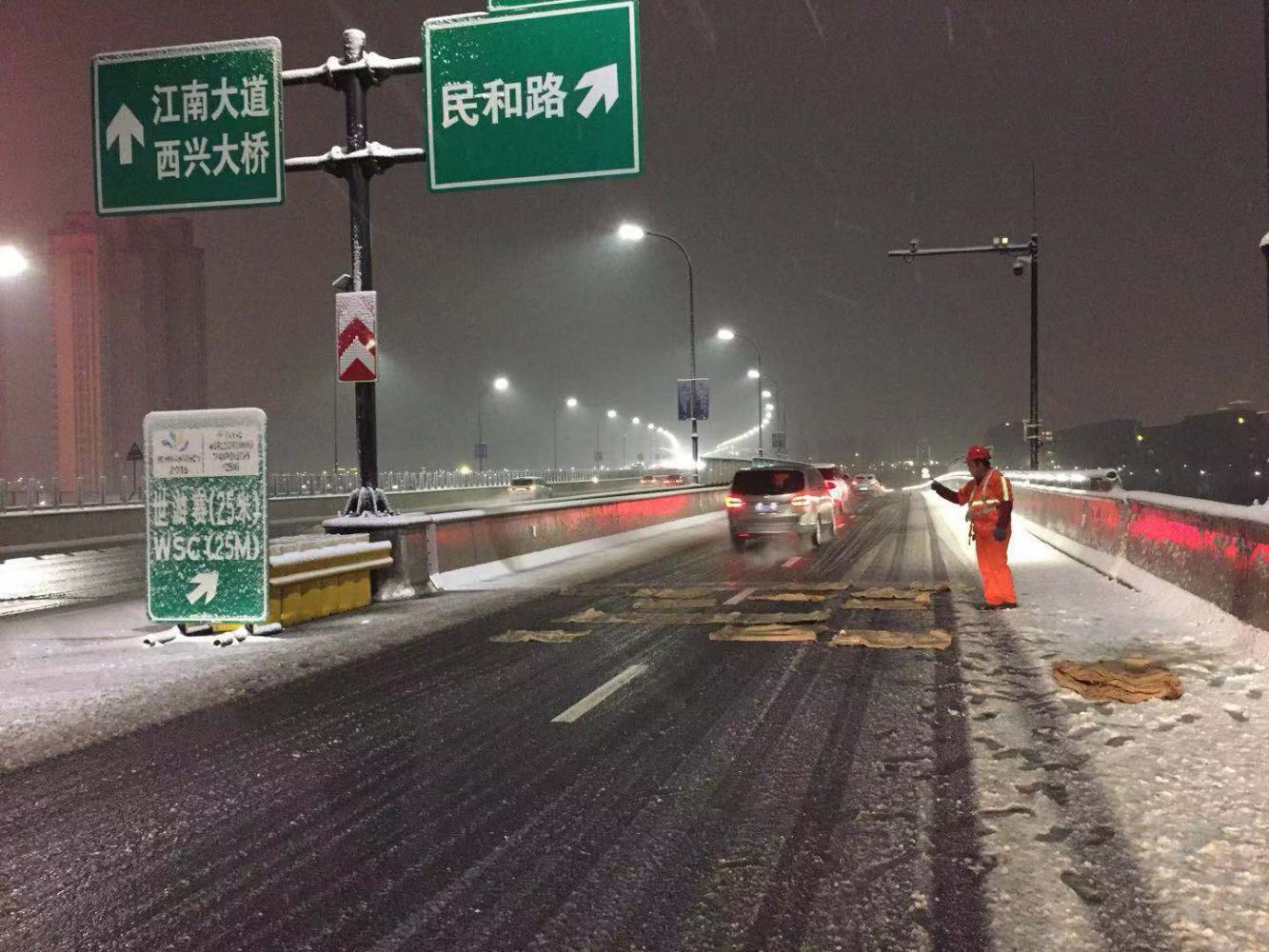副區長方軍帶隊檢查機場高速除雪情況