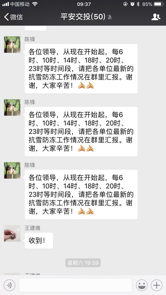 除通過紙質、電話方式布置工作外,集團領導通過“平安交投”微信號及時傳達上級要求,布置具體工作