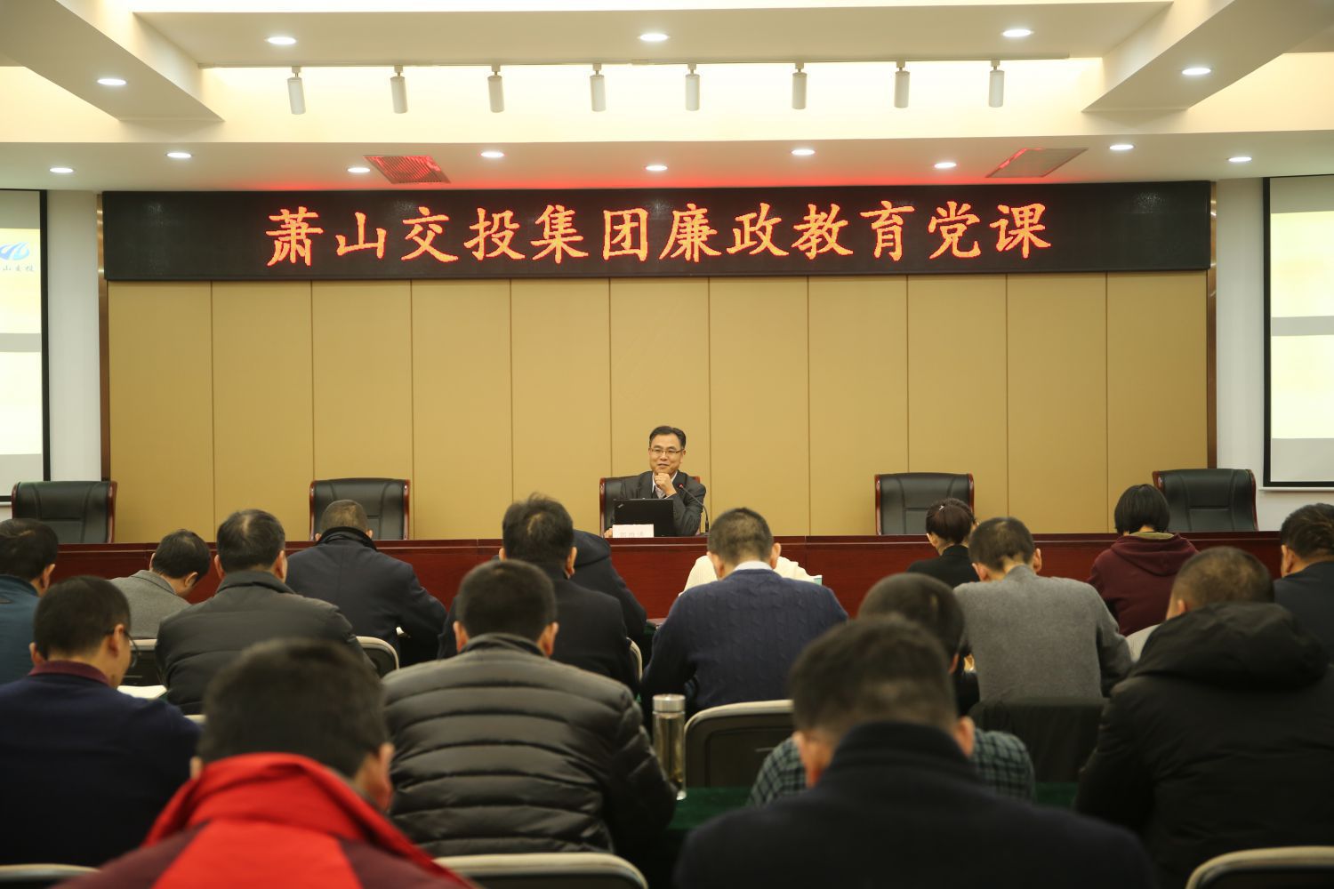 12月28日下午,集團(tuán)紀(jì)委書記郭維濤為全體中層干部授題為“提高三商水平 提升管理能力”廉政教育黨課。