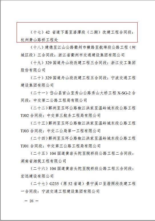 2月中旬,蕭山路橋工程處捷報頻傳,在省交通廳公布的關(guān)于2018年度全省高速公路和普通國省道項目檢查情況與“平安工地”評價結(jié)果通報中,有集團(tuán)下屬單位蕭山路橋工程處施工的42省道下葛至潘潭段(二期)建設(shè)項目先后喜獲三項榮譽:2018年度國省道建設(shè)施工標(biāo)準(zhǔn)化優(yōu)秀項目部、2018年度國省道建設(shè)信用管理優(yōu)秀項目部、2018年度全省公路水運工程“平安工地”。