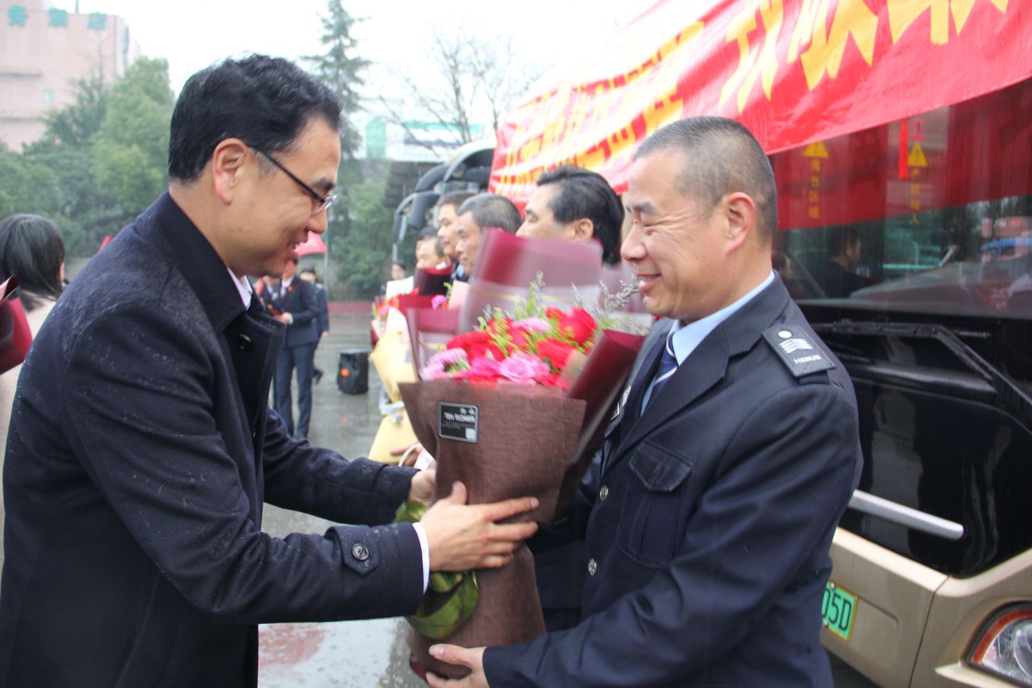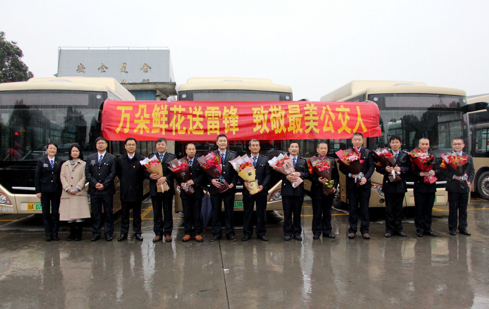 活動現場,蕭山公交黨委書記、工會主席王黎洪簡要介紹了公司10名“雷鋒”代表的優秀事跡;總經理張國棟發表致辭,表達了對公交“雷鋒”代表的感謝和致敬;區交投集團郭維濤書記發表講話并向“雷鋒”司機一一送去鮮花。收到鮮花的駕駛員們開心又感動,紛紛表示今后將繼續將雷鋒精神發揚光大。