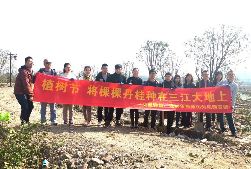 時光來到2019年,3月12日植樹節(jié)之際,交通建管團支部聯(lián)合規(guī)劃資源蕭山分局團支部,共同組織團員青年前往浦陽江沿岸種植桂花樹,將一棵棵丹桂種在了三江大地上,為浦陽江生態(tài)經(jīng)濟區(qū)的打造添磚加瓦。