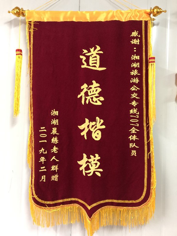 前不久,707路巾幗標(biāo)兵們收到了一份特殊的禮物——湘湖晨練老人們專程送來的錦旗,旗上閃亮的“道德模范”四個(gè)大字,既是群眾對她們 日復(fù)一日辛勤付出的充分肯定,更是對她們優(yōu)質(zhì)服務(wù)的殷切期望。今后,相信這群新時(shí)代巾幗標(biāo)兵會(huì)繼續(xù)踐行公交責(zé)任,樹立服務(wù)典范,開好政府放心車,開好市民滿意車,用優(yōu)質(zhì)服務(wù)打造杭城最美的流動(dòng)文明風(fēng)景線!