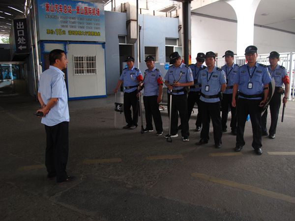 6月12日上午,長運公司安保對講機中傳來了警務室負責人報告下客處有一名暴徒持刀砍傷乘客的警情。警情發生后警務室人員與公司保安人員迅速趕往事發地使用反恐警具與暴徒進行對峙,同時立即用對講機向保安隊長、物業部匯報,并撥打110,要求立即增援并疏散群眾。公司立即啟動反恐應急預案,組織人員三分鐘內趕往現場將暴徒制服。